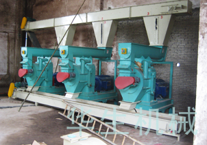本生產(chǎn)線適合原材料豐富地區(qū)布置作業(yè),在國內(nèi)逐漸有較多客戶投資操作。采用多臺(3臺以上)制粒機(jī)組合,新一代刮板分配模式形成生產(chǎn)線。該生產(chǎn)線將大部分單機(jī)進(jìn)料輸送系統(tǒng)組合一體化,系統(tǒng)程序明了、工人操作方便。